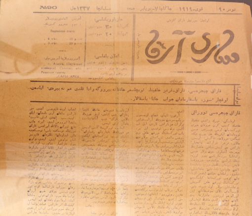 «Сарыарқа» газеті, №90, 1919 қой жылы, 7 ноябрь, 1-бет.