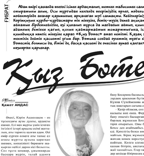 Адам өмірі қашанда өнегелі ісімен ардақталып, жеткен табысымен салмақталып отыратыны анық. Осы тұрғыдан келгенде өнеріміздің өрлеп, мәдениетіміздің мәйектеуінде аналар қауымының арқалаған жүгі салмақты. Кейіпкеріміз Бәтима Кәрімқызын құрбы-құрдастары тік мінезіне, бетің-жүзің демей ақиқатын ашып айтатын бірбеткейлігіне, өзі қиналып тұрса да жағдайын айтып, қиылып келген адамның бетінен қағып, қолын қайтармайтын жомарттығына, іске бейім, қиындыққа көмпіс мінезіне қарап Қыз Бәтес атап кетіпті. Қазақ халқында тектілік дейтін қасиетті ұғым бар. Бәтима сондай әулеттің тұяғы еді. «Қыз Бәтестің болмысы да, бітімі де, басқа қасиеті де әкесінен аумай қалған», – дейді көзкөрген қариялар.