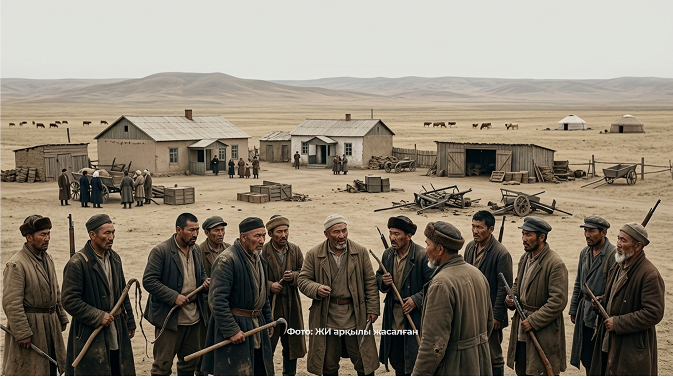 «…1930жылы ауданға 10-мың пұт астық даярлау жоспары берілді. Ал мұның өзі тұрғындардың ашу ызасын ғана емес, түсінбеушілігінде туғызады. Өйткені аудан тек қана мал шаруашылығымен айналысатын. Сондықтан мұнда астық дайындау дегеніміз мүмкін емес. Егер ет дайындау жоспарын ұсынса, аудан тұрғындары оған ренжігенімен өздері мал өсіретін болғандықтан ет төлеуге тиіс екендіктерін түсіне алатын еді. Бірақ шолақ белсенділермен ОГПУ-дің күштеріне сүйенген аудан басшылары астық жоспарын орындауға, тіптен асыра орындауға қол жеткізді: жоспарланған 10 мың пұттың орнына 12 мың пұт астық даярланса, ал 15 мың пұт тұқымдық қор жинаудың орынан 17 мың пұт жинап алды. Адамдар астық тапсырудың жоспары орындалмаған жағдайда кулак санатына жатқызылып, Совет үкіметіне жау, жат элемент ретінде мал-мүлкі тәркіленіп, өздері жер аударылатын немесе ОГПУ турмелеріне қамалатын болды».