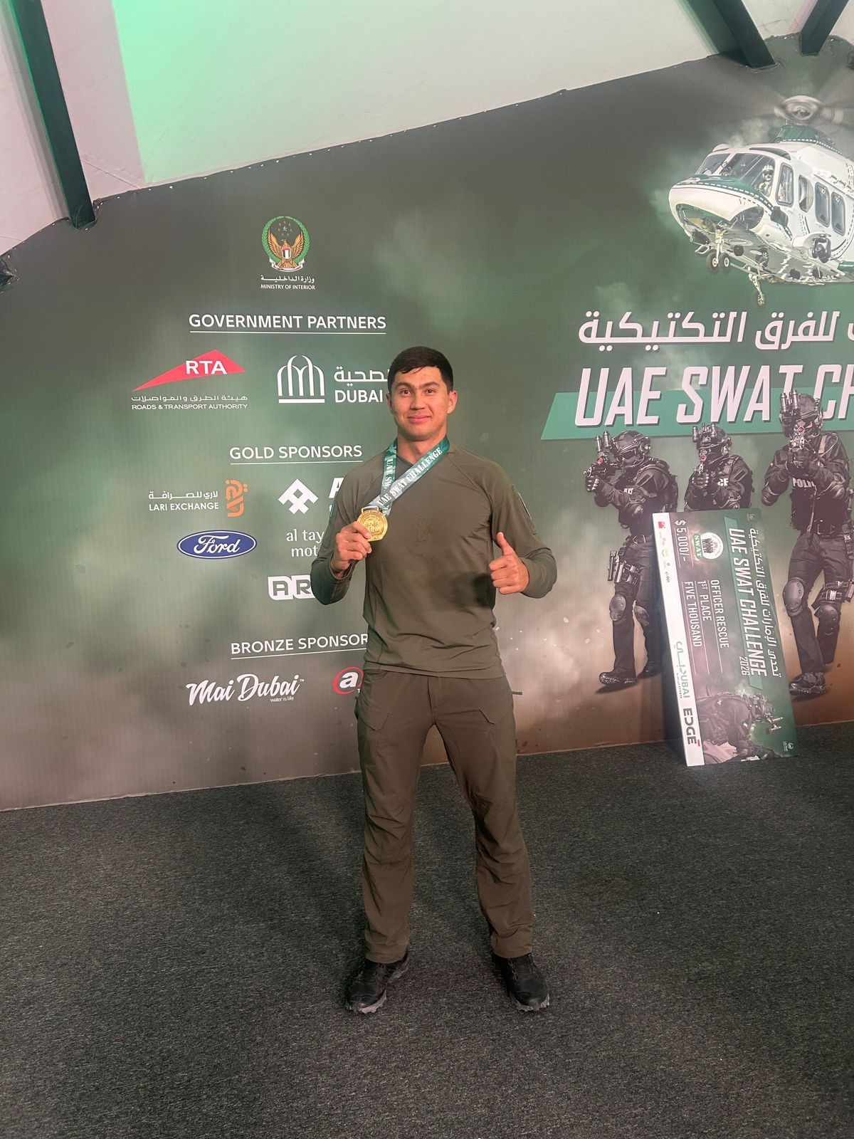 UAE SWAT Challenge – арнайы жасақтардың физикалық төзімділігі мен тактикалық дәлдігін қатар сынайтын жарыс. Мәселен, сайыс күндерінің бірінде Hostage Rescue Challenge кезеңінде мергендік дәлдік, жедел шабуыл, нысаналарды қателіксіз орындау және «кепілді» қауіпсіз алып шығу сияқты көпсатылы тапсырмалар орындалған.