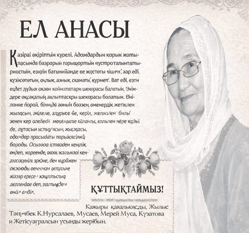 Қазіргі өмір тым күрделі. Адамдардың қарым-қатынасында да қарын ашыратын тұстар толып жатыр. Біздің бала күнімізде әр жастағы адамдардың өзіндік орны, салмағы, құрметі болатын. Үлкенді сыйлаудың, кішіні аялаудың, ата мен бала, аға мен іні, ене мен келін, тағы да басқа әулет мүшелерінің қалыптасқан шекарасы болатын. Өкінішке қарай, бүгінде соның бірін майшаммен іздеп, таба алмайсың. Той-томалақта далақтап билеген ақсақал, арзан күлкіге ерік берген әжелердің желіккен қылығын желіден де, өмірден де көріп, түңілесің. «Ұят пен ар-намыс болуы керек қой» деп жағаңды ұстайсың. Қысқасы, адамдар арасындағы парық қалмай барады. Осындай істерден көңілің жүдеп жүргенде иманжүзді, қазақтың әдебі мен ибасын сақтап жүрген, тілдескенде жүрекке жылылық ұялайтын жандармен жолығеып, жаның жадырап қалады. Сексен жасқа келетін Тоқтабала Нұрсапанова апамызбен әңгімелескенімізде көңіл көкжиегіміз кеңіп, біздер де сондай ғажайып көңіл-күйге ендік.