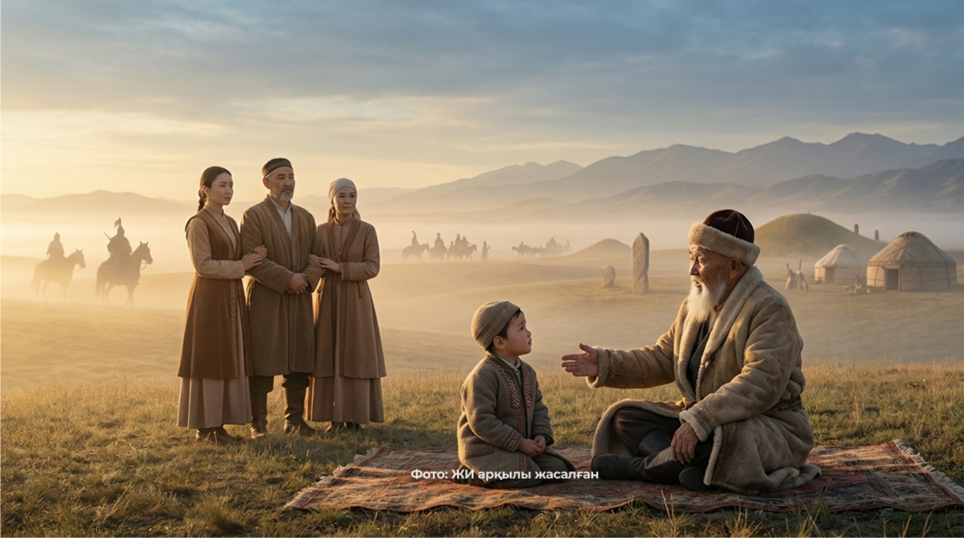 Балам өткен тарихыңды білесің бе? бабаң кеткен тапсырып жүр есімде. Бастан кешкен тірліктен жиып-теріп, тасқа жазған тарихын, үлесін де. Қазақ деген кеңпейіл халықпыз біз, болсын сенің, алдымен, бұл есіңде. Қолға қонбас белгісіз несіп келіп, өткен күнге түсінбей өшікпелік. Тыныс еткен тірліктің дәм-тұзына, қара жердей қадірлі бесікті еміп. Қаласы бар, ғылымы, ғалымы бар, халық едік, жүрмеген көшіп-қонып. Ел арасы таза еді қырқыстан да, өз заңы бар жағасын жыртысқанға. Есірігі сол кездің ақылды еді, білімді боп жүргеннен бұл тұстарда. Берекенің қаймағы бұзылмайтын, Сауран, Созақ, Жетісу, Түркістанда. Тірлік ету, жоқ мүлде қысылысып, қиялдың да жататын қысымы ұшып. Осы ортадан білім ап қайтатұғын, көңіліне көп сәуле түсірісіп. Түсі, тілі, ұғымы бөлек жандар, түркі тілі арқылы түсінісіп. Шалқып, тасып жатқан соң тойы, асы, белгілі ғой ашылмай ой қалмасы. Сөрелерде тізіліп тұратұғын, бабалардың байырғы қолжазбасы. Дос сүйініп жататын, шындығында, қызғанысып қалатын сорлап қасы. Жүздерінен көрініп нұр, жылуы, сол кездердің құлақта тұр дүбірі. Ойла балам, әрине, өз кезінде, жаудың сағы ақылмен сындырылды. Міне, сондай өркенді ел болмаса, мүмкін бе еді біздей ұрпақ тудыруы, – деп жалғасып кете береді әңгімесі атамның.