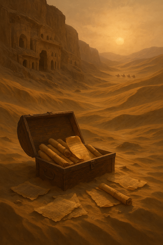 Стивен екі айға жуық “тексеру” жүргізу арқылы құмға көміліп қалған бір ерте заман татясынан (мұнарасынан) көптеген мәдени мұралар тауып алып, Хотан қалашығына қайтып келеді. Жол-жөнекей ескі бұйымдар сататын базардан өтіп бара жатқан кезде ол ойламаған жерден алдыңғы рет өзіне жол бастаушы болған Мехмет деген қариямен ұшырасып қалды. Қария жерге жайма ашып қойып, ерте заман жазбаларын сатып отыр екен.